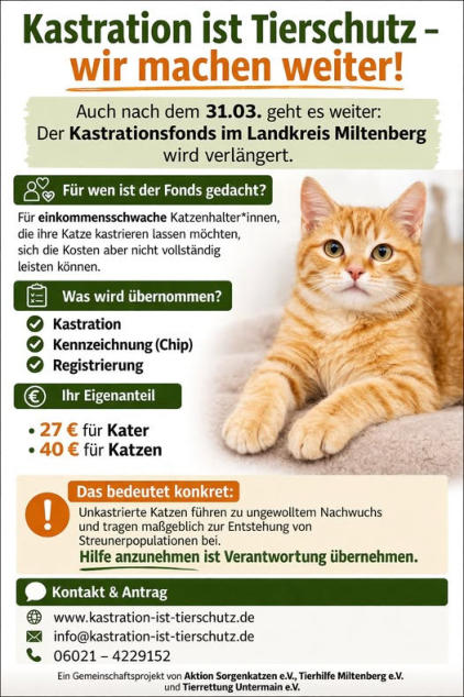 Kastration ist Tierschutz und kann viel Leid verhindern.
